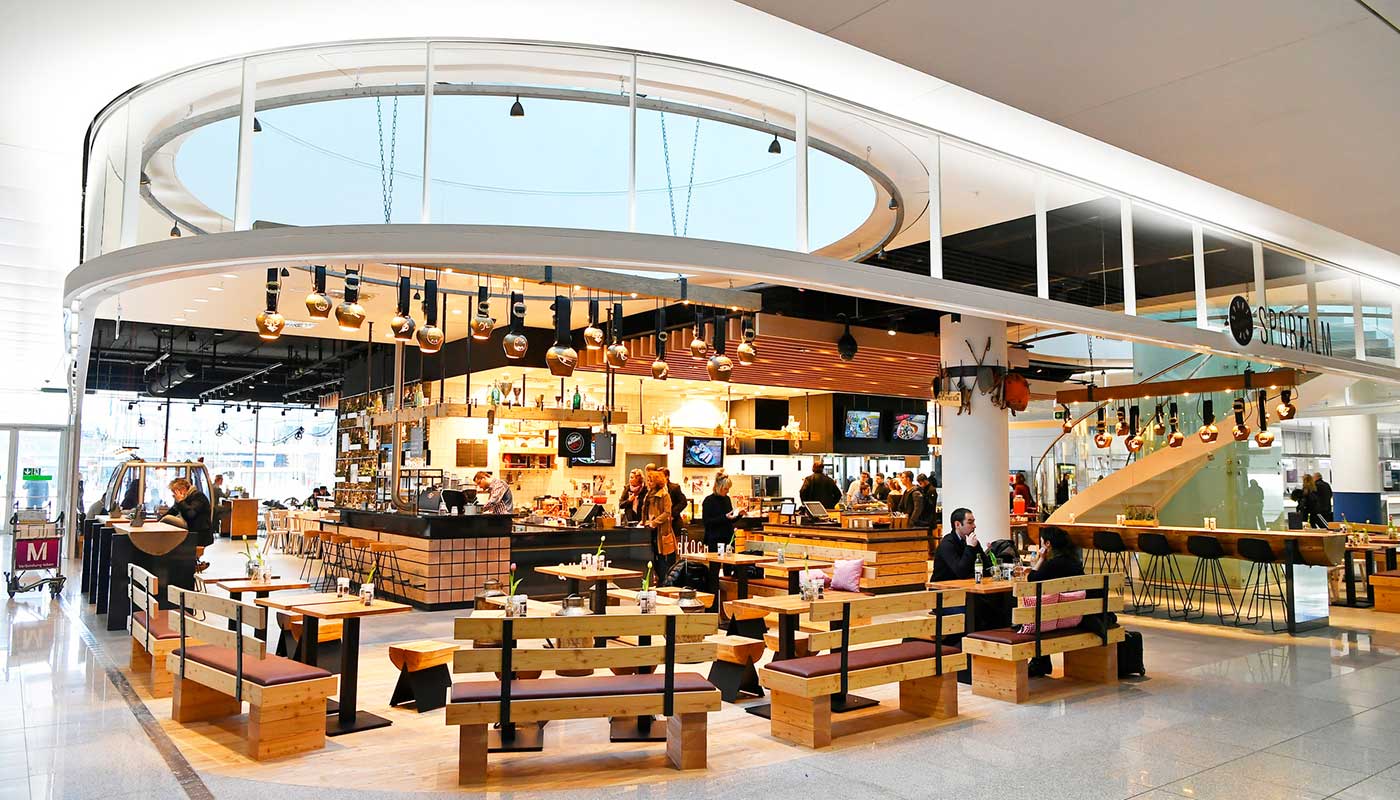 Kolejne trzy godziny spędziłyśmy leżąc w strefie relaksu na leżakach, które przypadły nam do gustu :D. Po półtorej godzinie lotu były zbawieniem dla naszych pleców, które zaczynały nas boleć od pozostawania w pozycji siedzącej przez dłuższy czas. Nie zapomniałyśmy również o obiedzie. Tym razem wybrałyśmy się do bardzo urokliwej restauracji “Sportalm”. Zjadłyśmy tam bardzo dobre naleśniki i byłyśmy gotowe na dalszą część podróży! Niestety, nie wystarczyło nam czasu by obejrzeć ofertę drogerii oraz sklepów z różnymi artykułami, ale obiecałyśmy sobie, że nadrobimy to podczas powrotu do Polski! Chociaż na prawdę trudno było nam chociaż na chwilę nie zajrzeć do stoisk naszych ulubionych marek. Cóż lot był tym razem ważniejszy! ;)